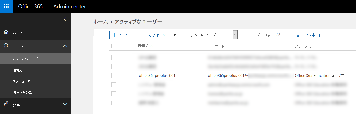 Office365の管理センター上にて、ライセンス認証用のユーザーを作成する。