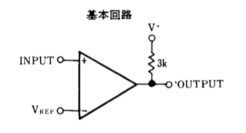 比較器である。参照(基準)電圧があり、その電圧より大きければ供給電圧を出力、小さければ0Vを出力するのが基本。下記サイト参照。